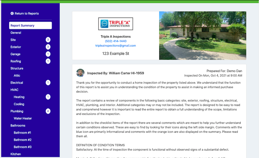 The inspection report you will get can be used as a recommended list of repairs to be performed on a property as well as an annual maintenance reminder to maintain a property after you purchase.